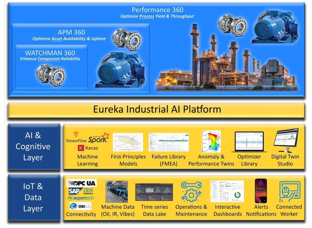 Eureka AI工业平台是APM 360™的基础层。除了安全的数据连接、处理和存储,Eureka工业平台还提供丰富的用户功能,如连接器、分析、仪表盘、警报、案例和工作流程,这些功能都无缝地集成到APM用户体验中。