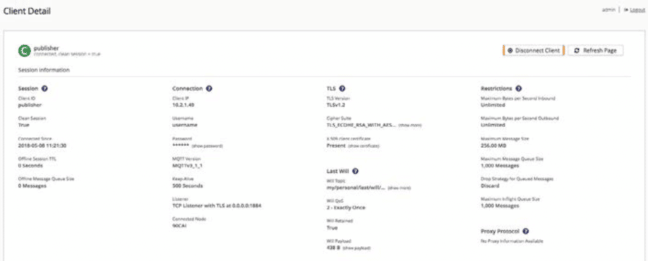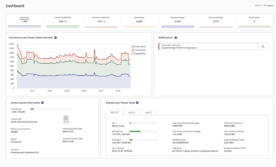HiveMQ提供一个控制中心来监控MQTT Broker行为并提供了一组基本指标。操作员还可以查看特定MQTT客户端的状态,并在特定客户端和Broker之间设置消息的跟踪记录,能够有效地对已部署的系统进行故障排除。