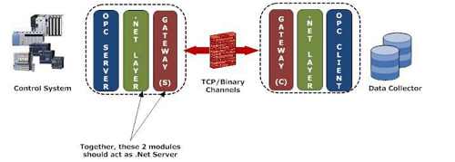 该方案中,OPC服务器和客户端有防火墙隔离。为了相互通信,OPC服务器和客户端需要选择相同的通信协议和格式化器。通道协议包括TCP和HTTP,格式化器包括SOAP和二进制。为了获得最佳性能,此方案中使用TCP通道和二进制格式器。
