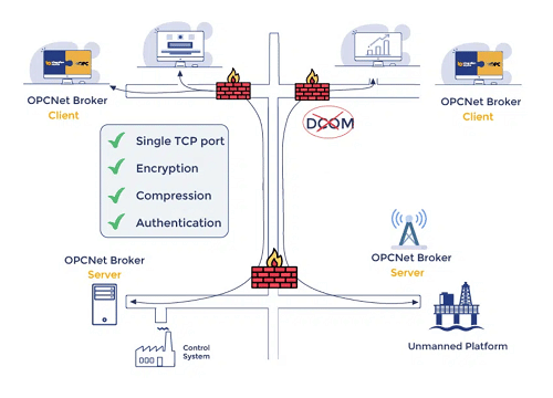为应对上述挑战,虹科提供了基于OPC的软件技术——虹科OPCNet Broker。虹科OPCNet Broker可以有效避免DCOM配置带来的问题,同时确保将过程数据和消息从一个系统发送到另一个系统时,仍能防止网络攻击以及防止未经授权的用户获得关键的过程控制数据和管理生产的系统,促进现场通信从单一的工厂系统水平整合到高度复杂的网络。