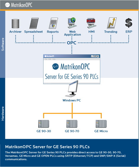 - 支持与 GE 90-30和90-70 PLC以及Versamax,GE Micro和GE OPEN PLC的连接。