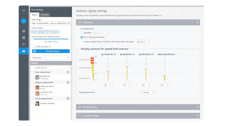 促进安全驾驶,检测并防止超速、过度怠速和急转弯。