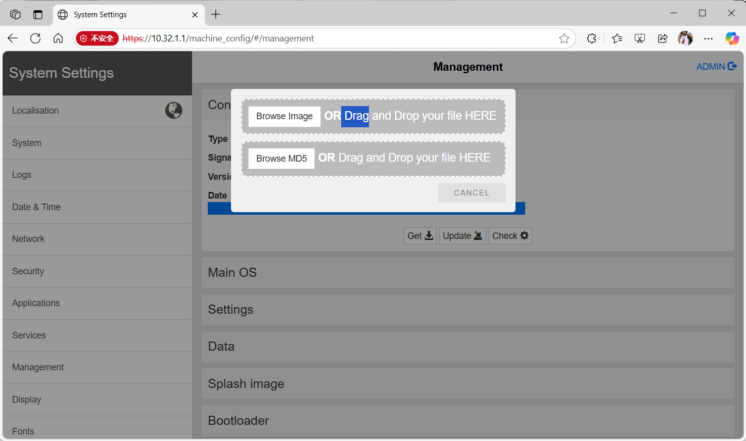 通过访问HMI设备的系统设置页面(https://ip/machine_config),更新设备的BSP,实现HMI设备新功能的更新。