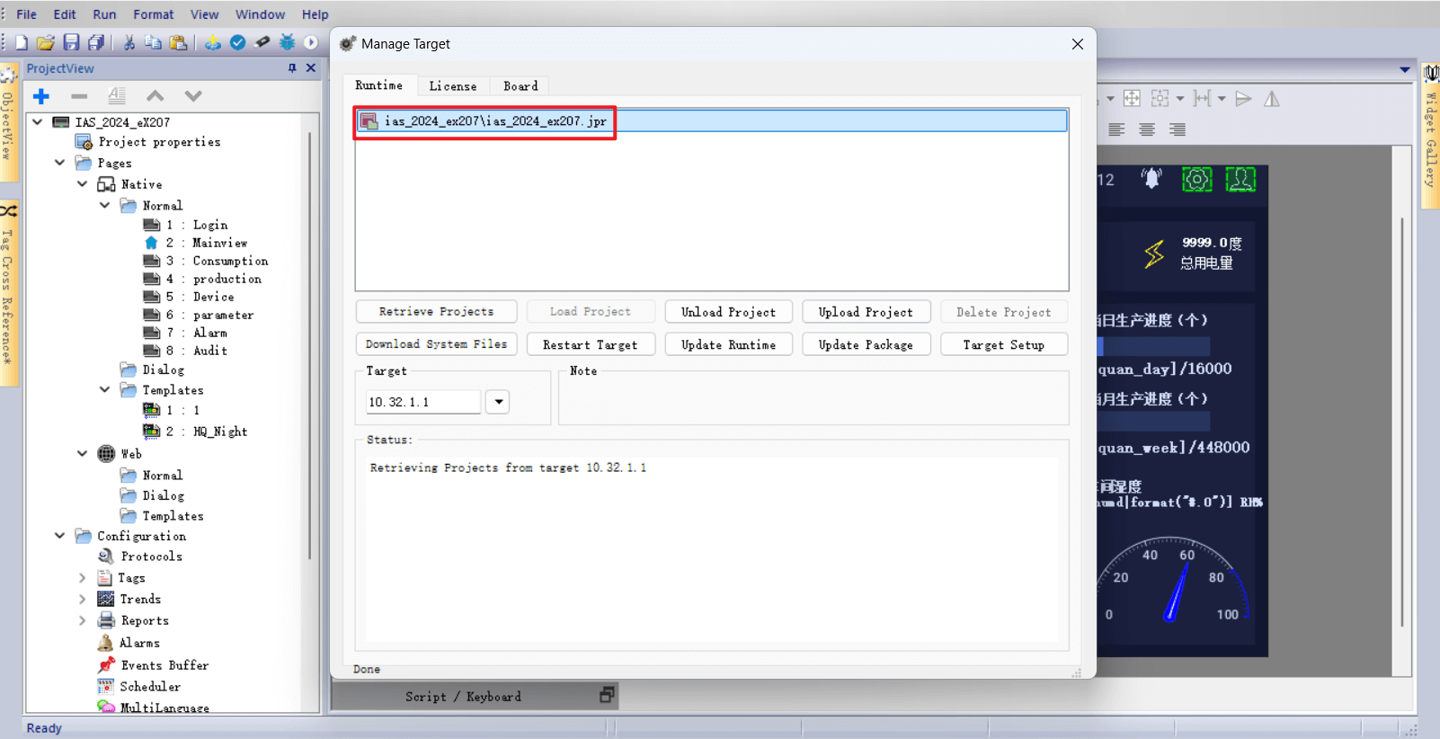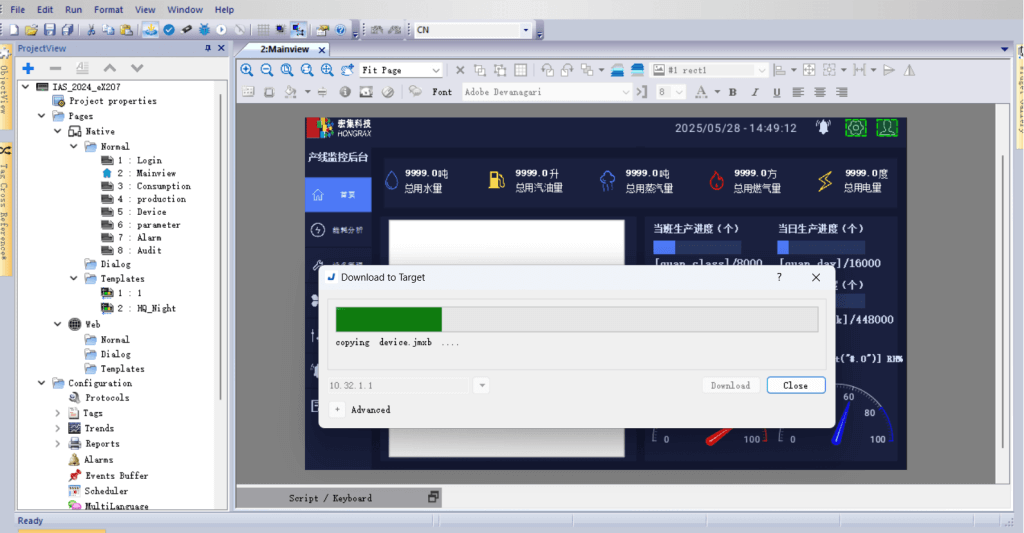 使用物联网HMI配套的JMobile Studio组态软件可以完成物联网HMI程序的异地更新、下载和上传,不需要出差到现场或联系现场人员协助操作,减少时间和出差成本。
