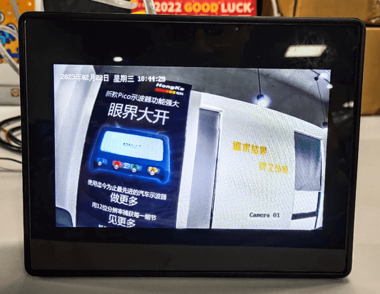 如下是虹科eX707G HMI通过RTSP协议实时显示海康威视网络摄像机(DS-2PT1C20IW-D3)的监控画面。