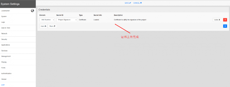 - 使用“Update”按钮上传证书