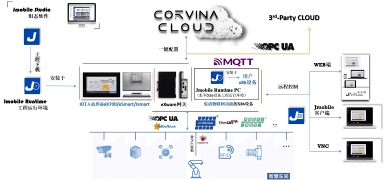 虹科物联网HMI作为一站式物联网解决方案,致力于解决用户在数据采集和可视化、远程监控、边缘计算、软PLC、数据存储(SQL数据库和CSV文件)、数据上云(OPC UA、MQTT)等方面的需求,帮助企业快速实现数字化转型。