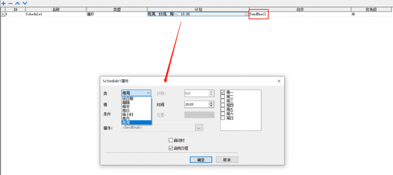 除此之外,用户也可以通过虹科物联网HMI的调度器功能设定日程计划,自动发送电子邮件。比如每周一上午十点将设备状态信息通过电子邮件发送给相关人员。