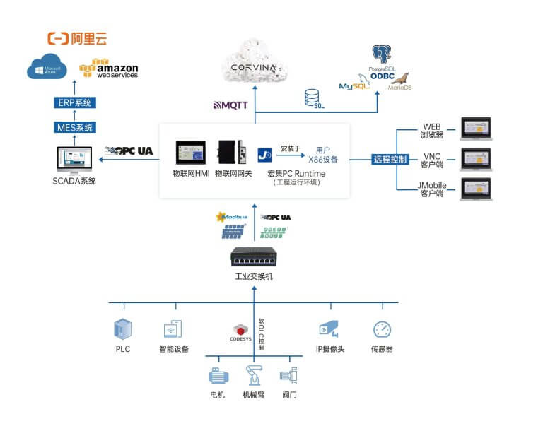 宏集EXOR物联网HMI将数据采集、分析、可视化、PLC控制、数据存储、云端传输和远程管理整合在一个平台上,实现多功能一体化,极大简化了设备管理流程。