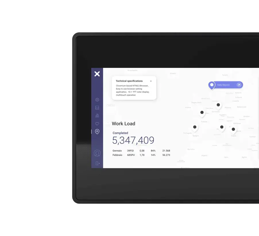宏集eX207具备强大的64位四核CPU,确保JMobile应用程序能以最高性能水平运行。 宏集eX207具备一个CAN端口,允许通过CANBus进行通信,从而增强了连接性能。 宏集eX207对多种多协议兼容,可与各种系统无缝集成,确保跨行业的多功能应用。