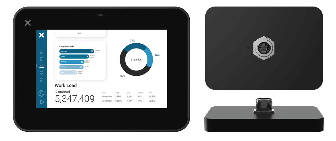 受专利保护的超薄设计和IP67 防护等级使其无需昂贵的机柜安装。当需要将操作终端放置在具备各种专用HMI支撑臂系统的机器上时,宏集JSmart 705具备 IP67防护等级的全封闭面板显示出决定性的优势 。