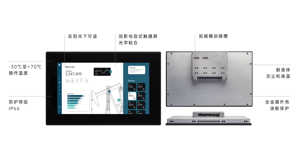 宏集eXtreme恶劣环境专用系列HMI,结合了专为户外使用而设计的高度稳定的硬件,以及极其灵活的JMobile软件,使操作HMI更为轻松,这在恶劣的环境条件下至关重要。这些 HMI 可轻松连接到广泛的网络和协议,并且它们与JMobile平台中可用的每个功能都兼容,使它们能够无缝集成到现有架构中,为矿业、石油天然气开采、风电场等户外应用场景提升效率。