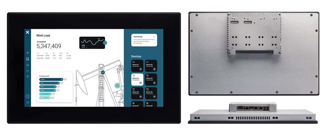 玻璃投射电容式触摸屏和分辨率为1920×1080的绚丽15″宽屏显示屏相结合,可保证在此类环境中实现最高的光学性能和耐受性