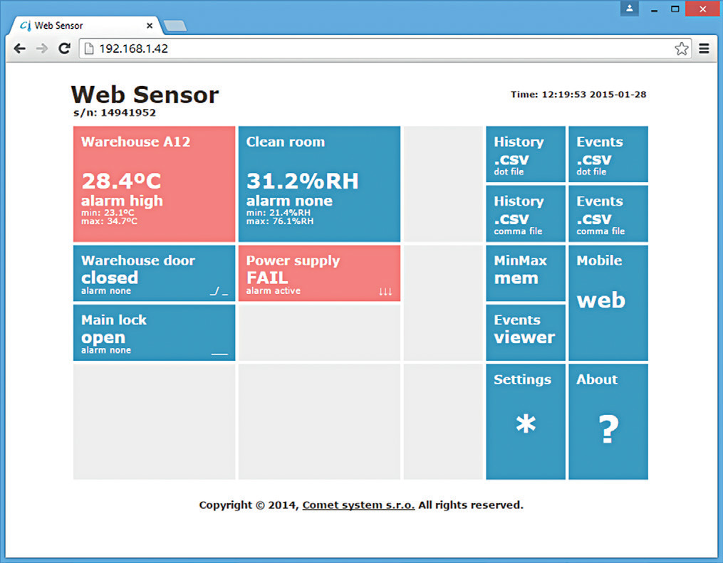 可在任何地方的Web浏览器上直接在线获得,所有您需要做的就是输入IP地址。警报由红色字段指示。