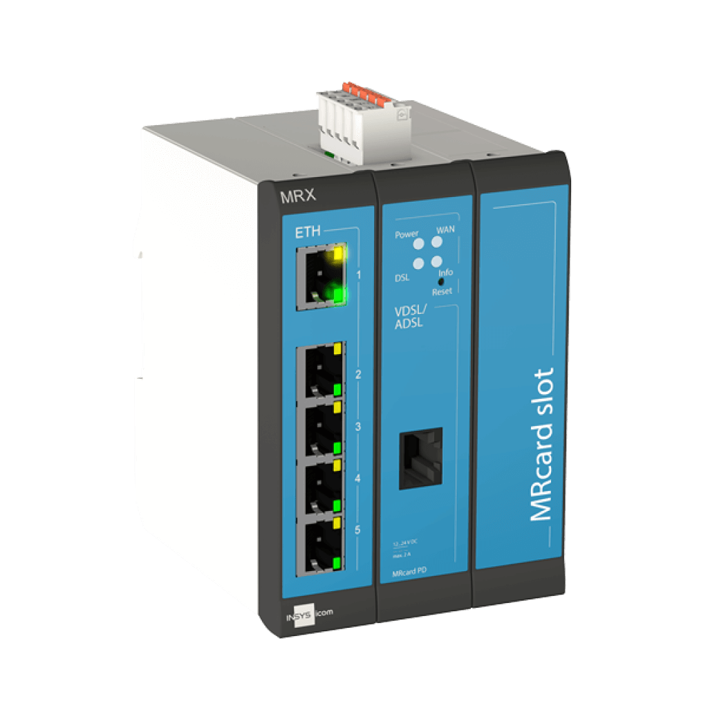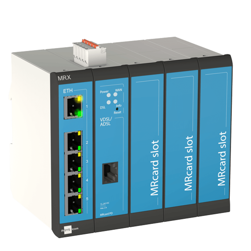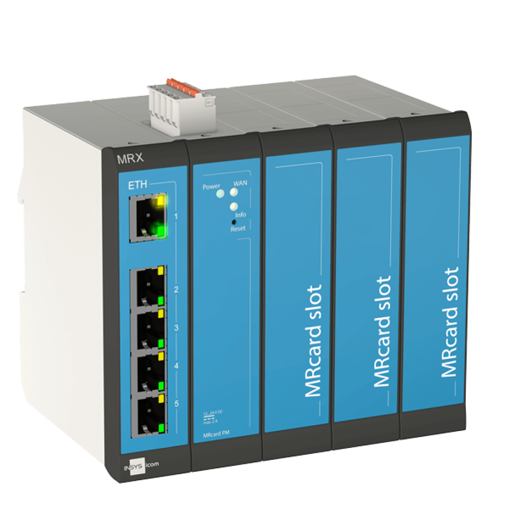 除了冗余 WAN 通信之外,宏集INSYS路由器还提供进一步的模块化调整。这允许您使用附加端口模块化地扩展路由器。除了用于 WAN 通信的插卡外,HJ-MRX 系列还提供RS 232 和 RS 485、千兆位 SFP、数字和模拟输入或 WLAN 等接口空间。这使得设备的配置变得更加容易,并节省了控制柜的空间。