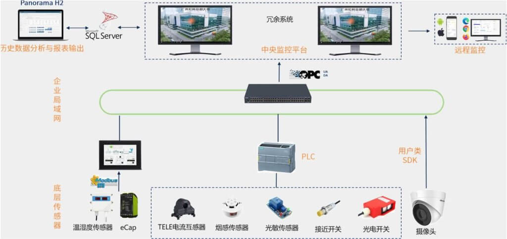 支持从100点到百万级点数的规模扩展, 协议转换网关/HMI适配现场数据采集