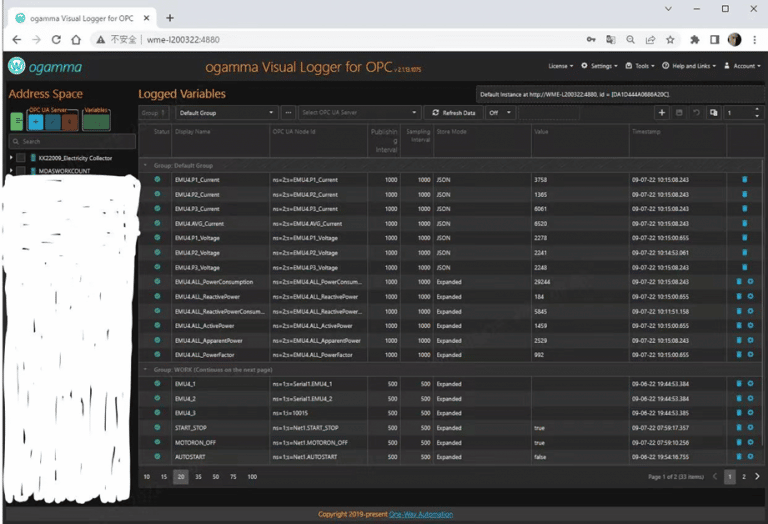 通过软件提供的Web配置界面以及我们提供的详细操作文档,客户快速完成了OPC UA服务器及其数据变量的添加、虹科OVL软件和PostgreSQL数据库之间连接,以及Grafana软件和PostgreSQL数据库的连接,实现了现场几十台OPC UA设备数据的采集、存储和可视化。