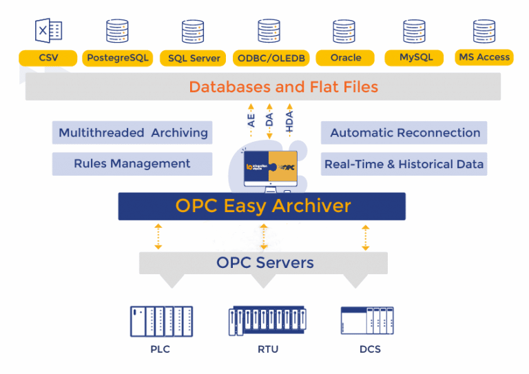 上世纪九十年代,传统OPC通信技术的诞生为不同生产商的工业设备通讯建立一整套开放的接口、属性和方法标准集,进而实现了不同协议设备和上位机之间的通讯。尽管随着OPC UA的快速发展,传统OPC技术处于逐渐被淘汰的阶段,但是企业现场中仍然有很多支持传统OPC技术的设备,需要对其数据进行采集和存储。为此,虹科提供了一种采集OPC数据并存储到数据库的解决方案——OPC Easy Archiver软件,软件整体架构如下图所示。