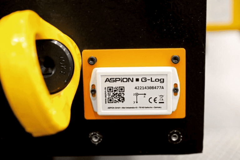 在决定批量采用宏集ASPION G-Log冲击记录仪之前,勇克集团的运输团队首先使用样机进行了多轮冲击测试。技术人员通过模拟实际运输情况(如挂砝码在起重机上模拟负载)来评估设备的抗冲击能力。测试结果经过广泛的分析,确保了设备在运输过程中能有效记录并反馈冲击事件。