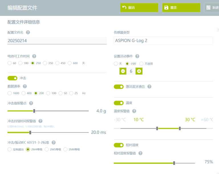 设备支持自定义设置,如冲击强度、持续时间、温湿度阈值等。只需选择合适的配置文件并上传至记录仪,即可完成所有设备的设置,大大简化了操作流程。