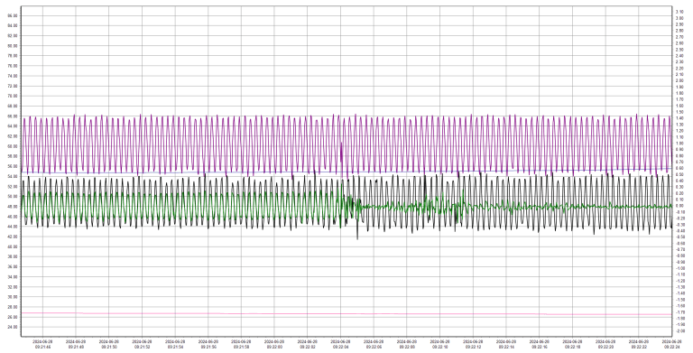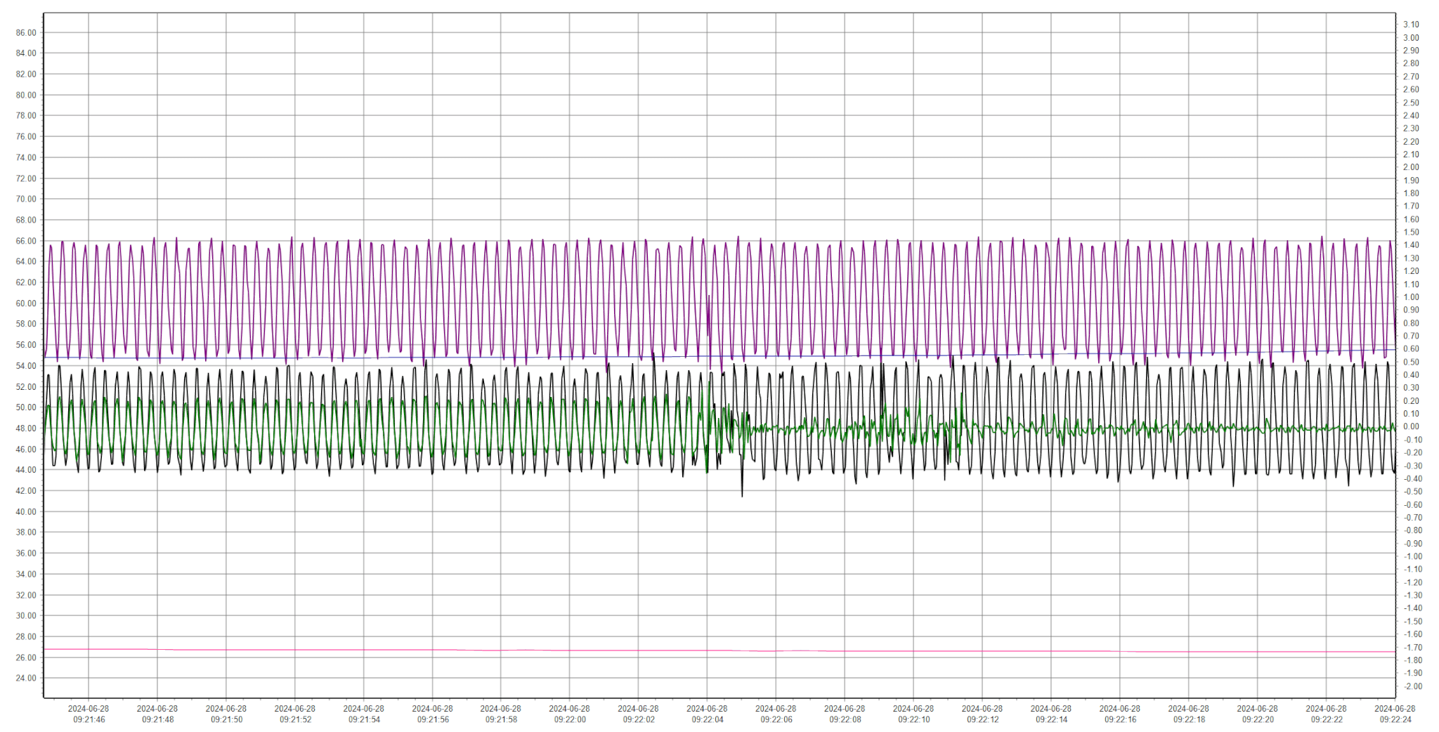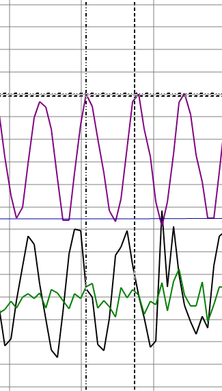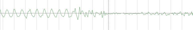 对其中环形振动测试部分进行放大,我们得到下图所示的振动细节。可以确认环形振动台产生了-0.4至+0.5g的周期环形加速度。