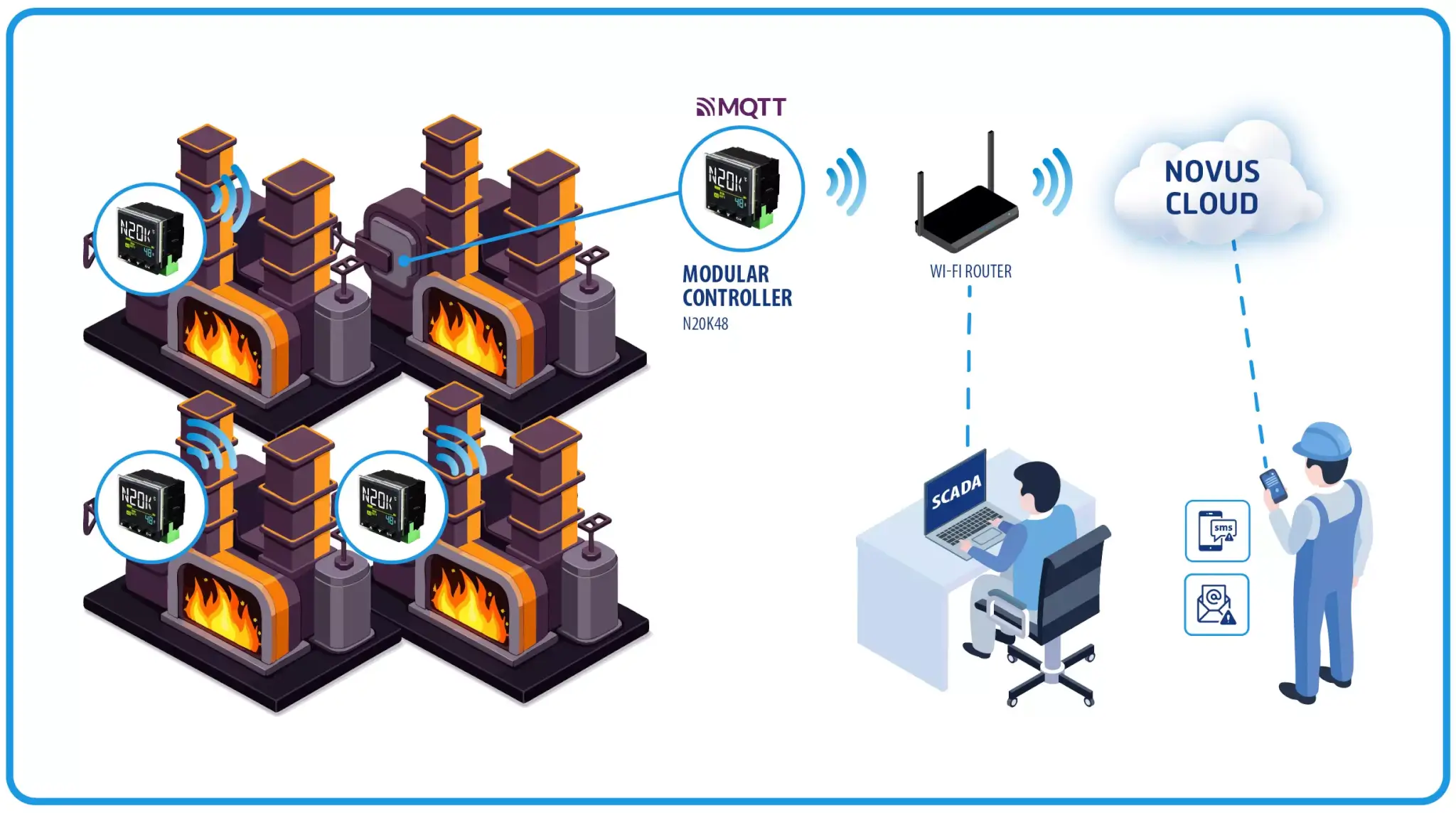 本方案采用具备原生 Wi-Fi 功能的宏集N20K48 模块化控制器,对工业电炉进行精确的 PID 温度控制。设备无需额外网关,即可通过工厂现有的 Wi-Fi 网络直接将数据上传至云端(NOVUS Cloud),实现生产过程的数字化监控。