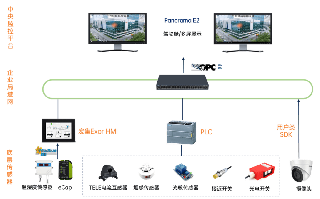 宏集一站式控制箱解决方案系统架构和控制箱实体如下所示: