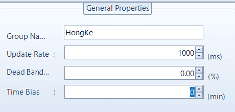 (2)配置OPC组名称、更新速率、死区(百分比)以及时间偏差等参数