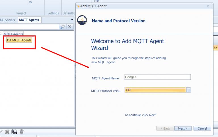 1.点击菜单栏中“MQTT Agents”添加MQTT发布端