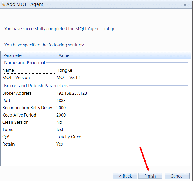 (2)配置MQTT Broker连接参数、发布主题以及QoS服务等参数