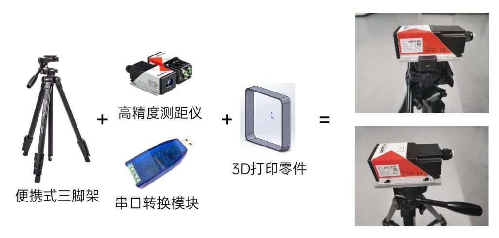 宏集测距仪便携式支架套装由宏集高精度测距仪和附加模块组成: