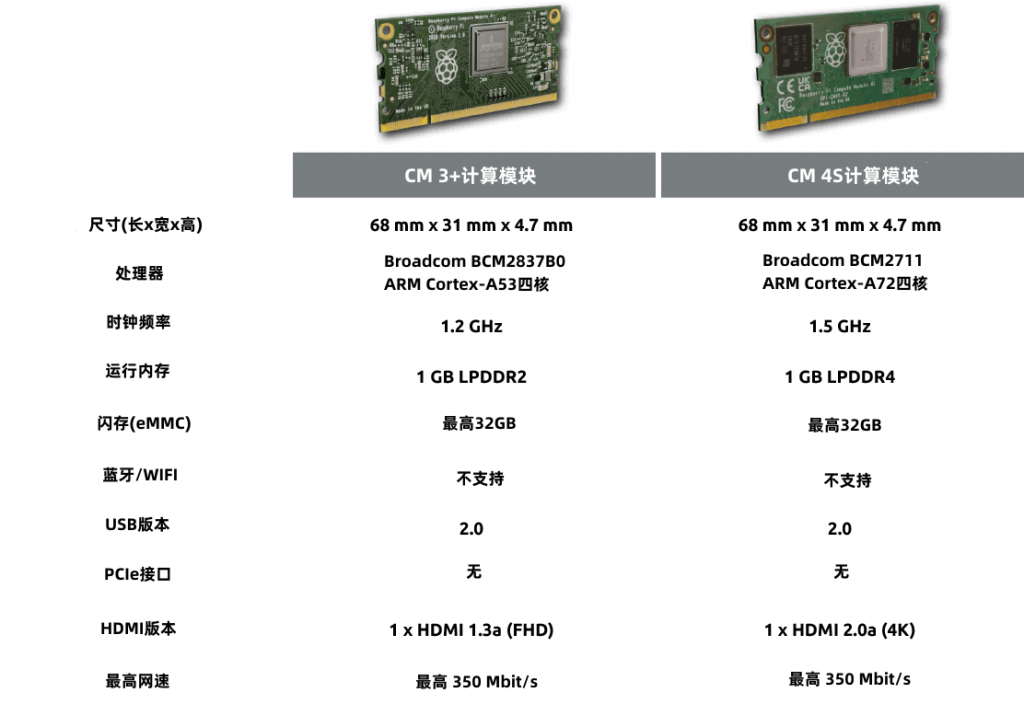 树莓派CM3+和CM4S的主要区别