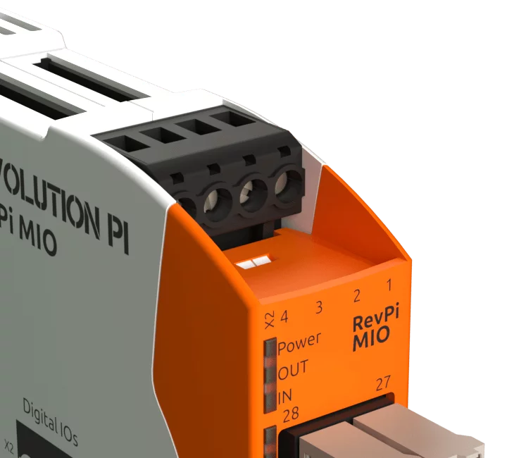 除了模拟输入和输出,RevPi MIO还具有4个数字通道。每个通道可以配置为数字输入或数字输出通过革命Pi配置工具PiCtory。可以设置PWM输入、脉冲测量、GPI 24V、PWM输出、脉冲输出和GPO 24V电平输出。