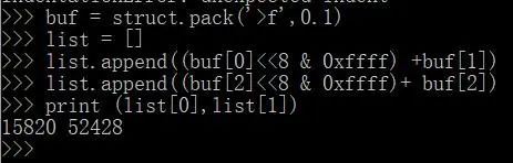 2、写入一个浮点型数据,通过位运算把32位浮点型数据拆分成两个16位整型数据,分别写入到两个寄存器中。