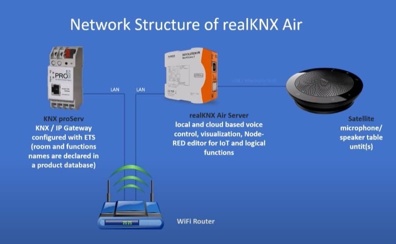 ProKNX是一家从事提供家庭自动化设备的公司,专注于离线语音控制和高度可定制的解决方案。该公司赢得了在柏林举办的德国智能家居奖,这是一项与家庭自动化领域相关的国际竞赛。除了著名的语音助手Siri、Alexa和Google Home之外,该公司的新产品realKNX AIR现在还提供了非常强大的离线语音控制功能。离线语音控制功能不依赖于数据上传或internet帐户,是独立运行的。在操作上,既不需要智能手机,也不需要平板电脑。realKNX air server基于RevPi Core 3,是一个带有桌面麦克风/扬声器的DIN导轨模块。