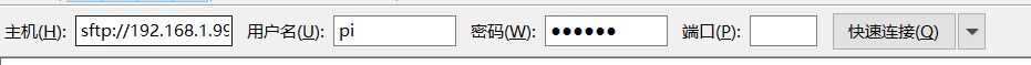 (2)输入IP地址、用户名(pi)、密码,点击“快速连接”,即可连上树莓派的FTP服务器。