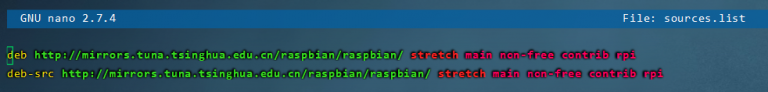 deb http://mirrors.tuna.tsinghua.edu.cn/raspbian/raspbian/ stretch main non-free contrib rpi