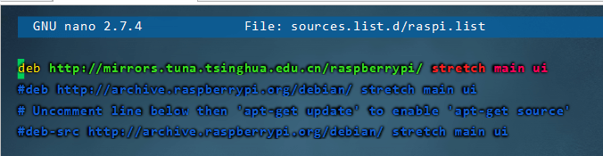 deb http://mirrors.tuna.tsinghua.edu.cn/raspberrypi/ stretch main ui