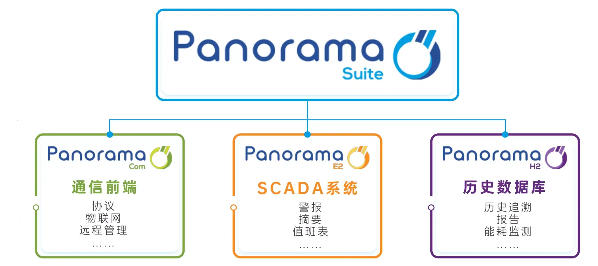 宏集Panorama平台由Panorama COM通信前端、Panorama E2 SCADA监控系统和Panorama H2历史数据分析组成,这三个组态软件独立、可组合且互补,助您轻松应对数字化转型的挑战。