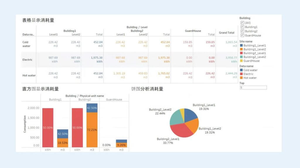 - 用电、用水能耗分析管理,可视化仪表板