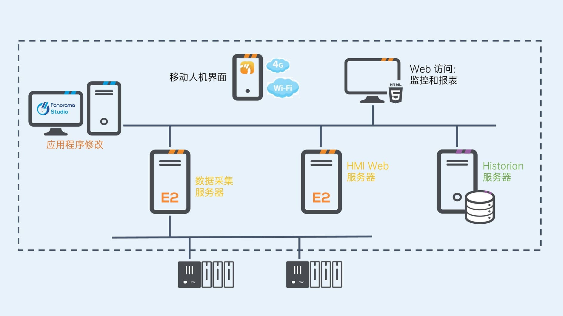 - Panorama E2:主要用于数据采集与可视化、数据处理、警报管理(语音、短信等)、远程控制、视频监控等多种SCADA功能