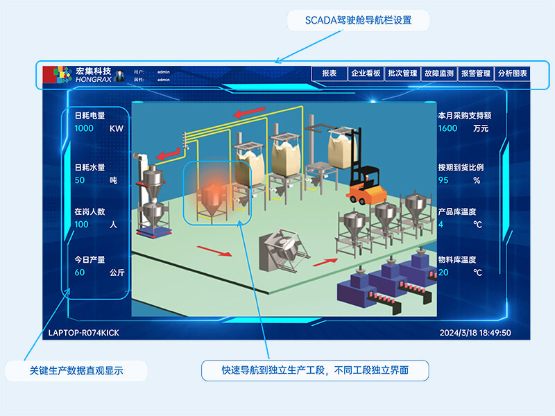 在食品行业的数字化转型过程中,宏集Panorama SCADA可帮助企业构建食品工厂生产管理系统,提高生产效率并降低能耗:实时监测和控制关键指标,让企业及时发现故障,避免生产中断;收集和记录历史数据,让企业了解生产数据的变化趋势,优化生产流程;实时监测能源消耗,帮助企业发现高耗能设备或流程。宏集Panorama SCADA支持PC、平板、手机APP三端界面的无缝切换,允许企业随时查看和控制关键生产数据,是未来食品生产加工管理系统的智慧引擎。