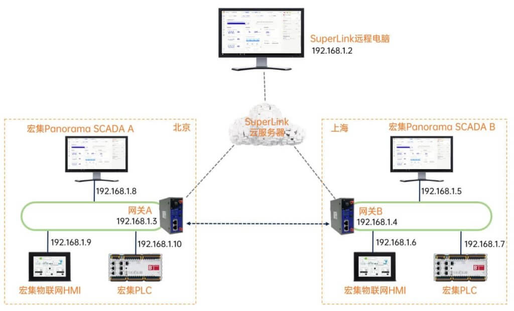 支持Superlink软件远程组网,实现点对点,点对多传输,通过Web HMI等异地远程访问方式,最多可并发10个