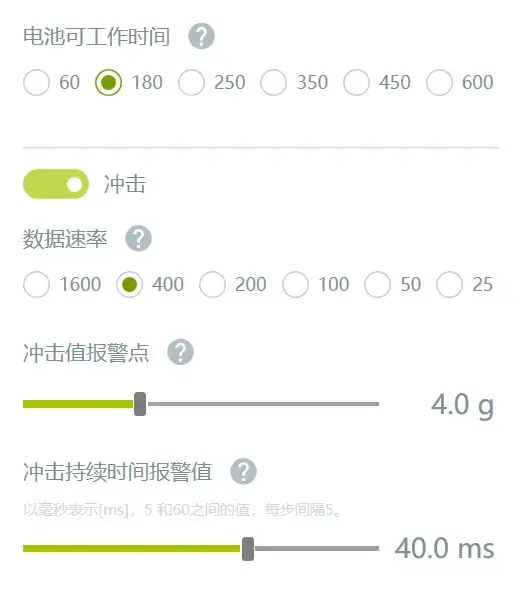 应该选择哪些设置?一般而言:待运输的货物越重,阈值越低,以宏集G-log 2冲击记录仪为例: