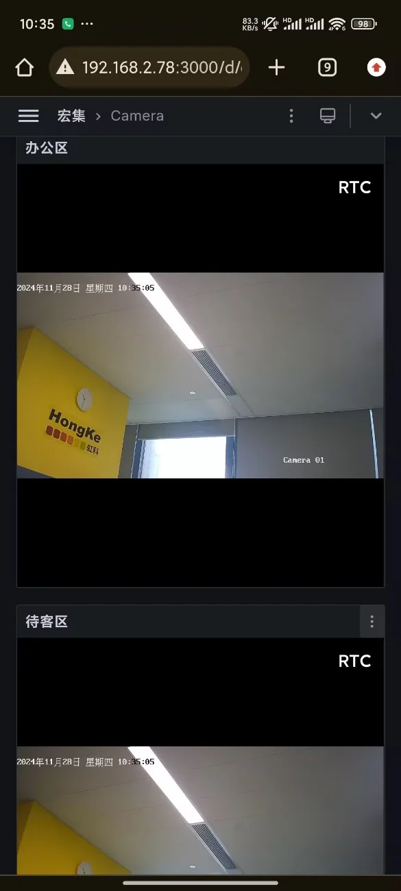 支持本地显示及手机、平板端远程访问,用户通过浏览器输入服务器 IP 即可实现跨设备监控