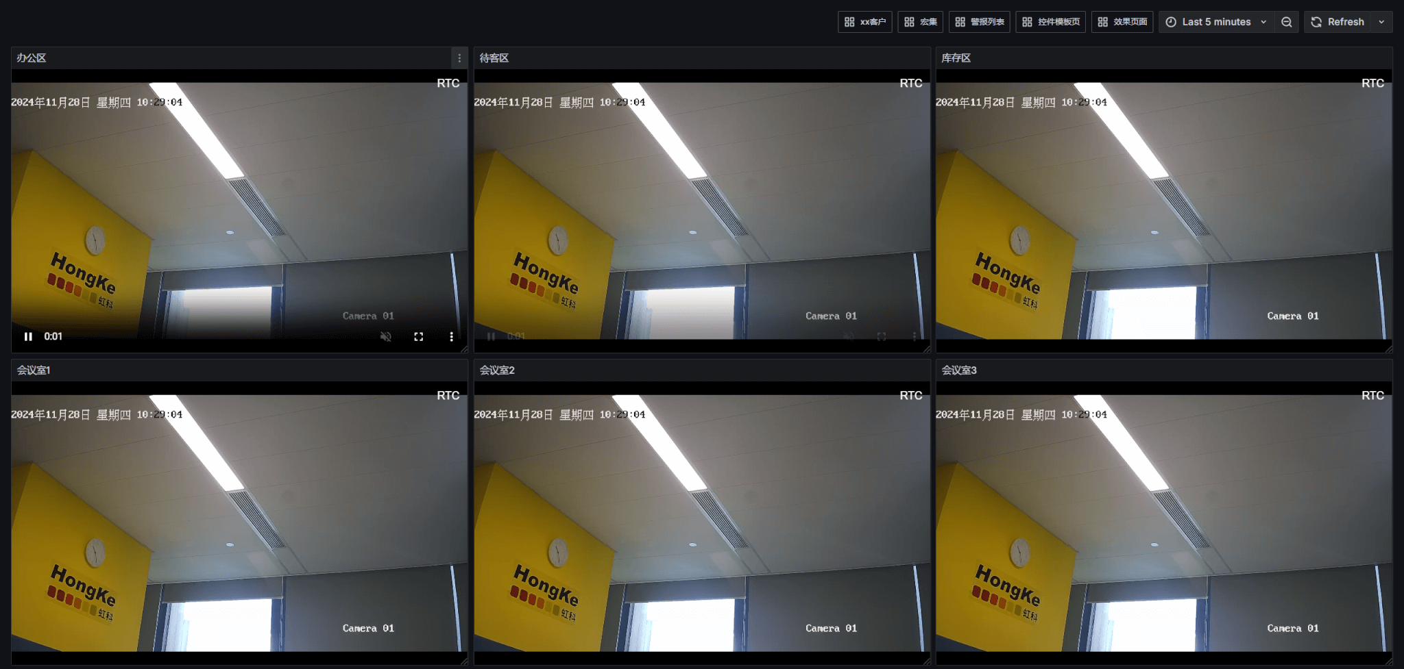 支持接入海康威视 / 大华等品牌摄像头的 RTSP 视频流,实现现场实时监控