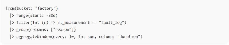 支持编写定制化Flux语句(针对于influxDB),实现数据过滤、组合、计算等分析。内置高阶可视化控件支持定制化分析,可完成产线周产量计算、故障时间统计等复杂需求