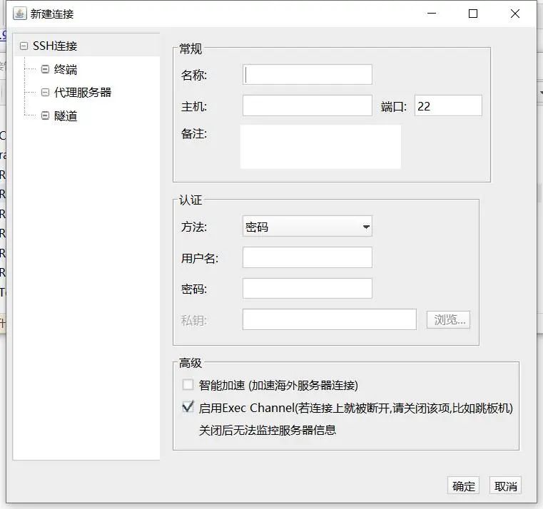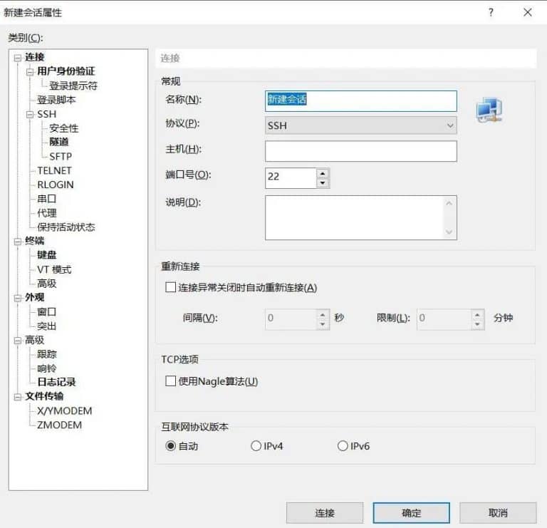 (1)文件->新建,定义设备名称,协议选择SSH,主机输入设备IP地址,然后点击确认;