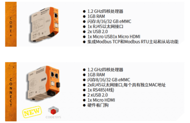 此外,它小巧灵活,功耗低,支持用Python/Java/C/C++/C#、Node-RED可视化编程工具进行开发,还能实现CPDESYS软PLC功能,在数据采集和小型控制等场景可帮助用户快速创建应用,实现工业物联网和数字化生产。