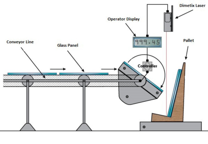 传送带上的玻璃面板什么时候停止才能使玻璃安全精确的放置在托盘上?只能由托盘高度决定;而怎么才能精确得知托盘高度?只有宏集激光测距传感器才能决定。